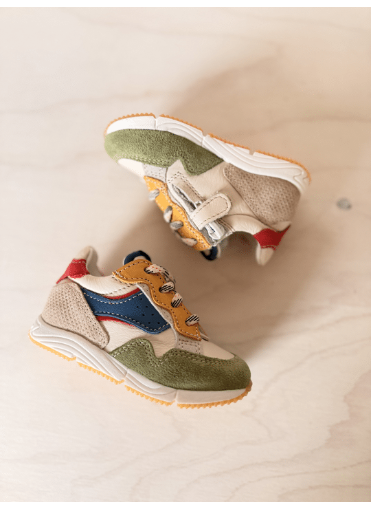 Lederen sneaker van het Italiaanse merk Ocra met veters en rits.
